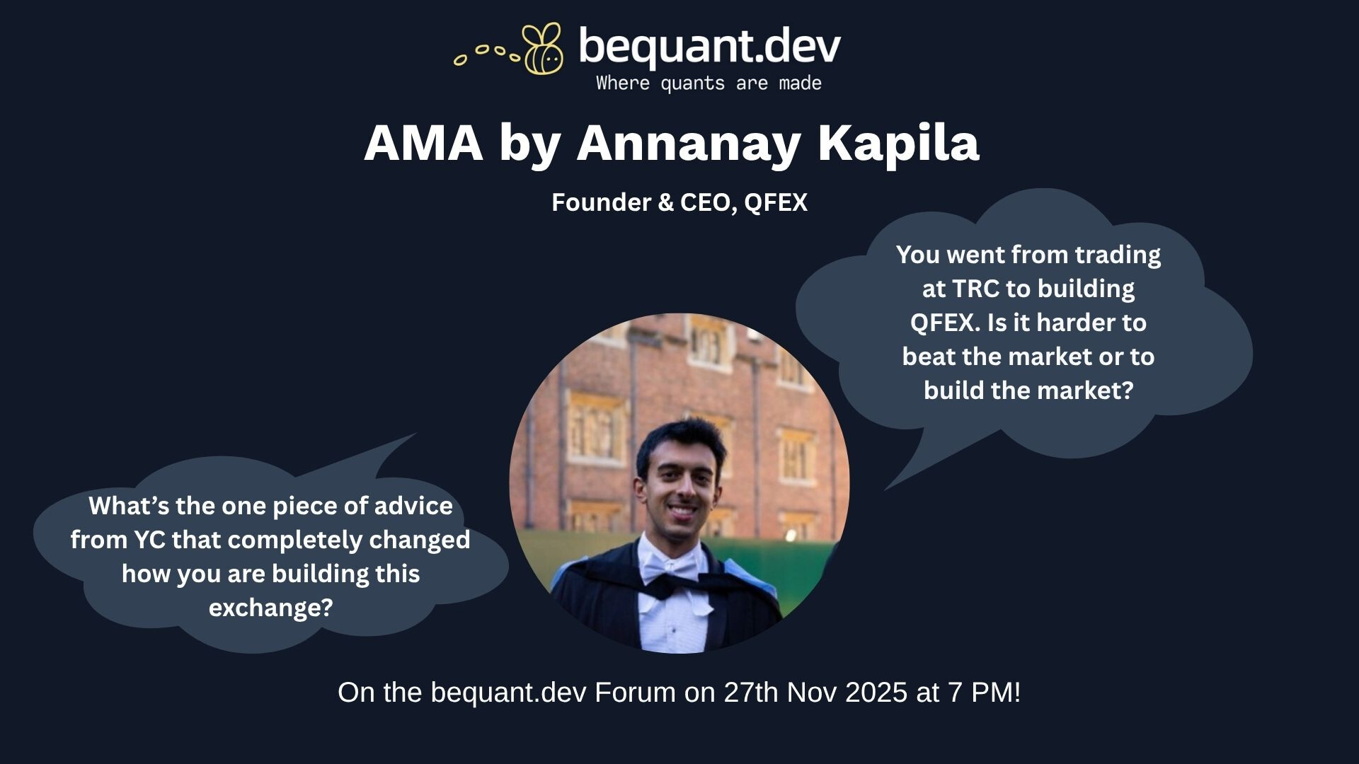 Hey Annanay. How does day-to-day work at an exchange differ from life at an established HFT firm? And given that QFEX is still new, what approaches are you taking to build credibility and earn the trust of traditional market participants?