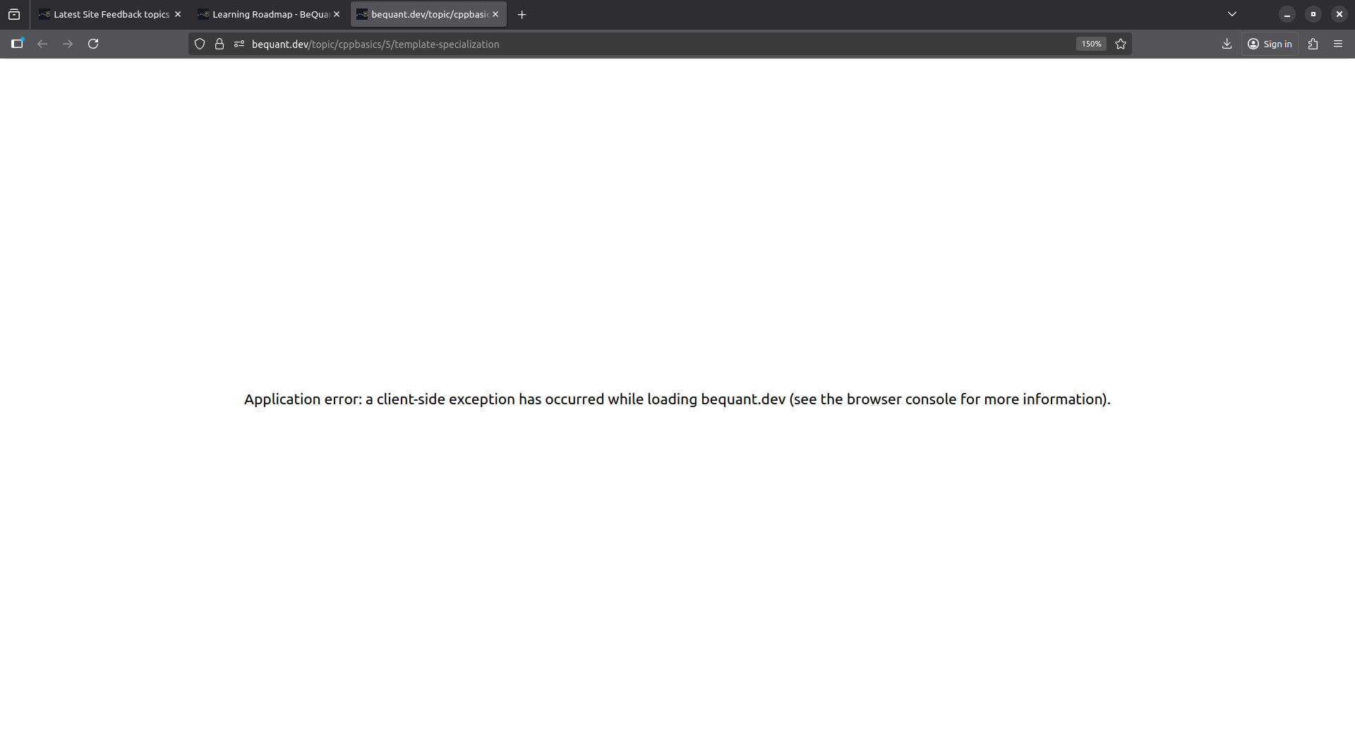 It occurs, when I try to open “Template specialization” under C++ basic roadmap (same as in SS above)
